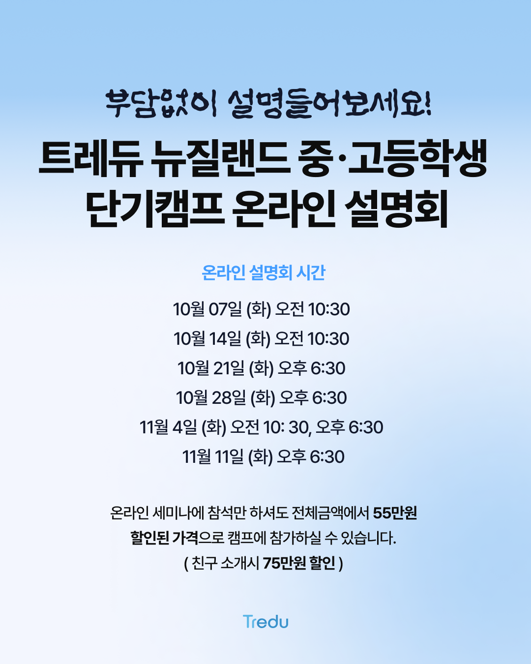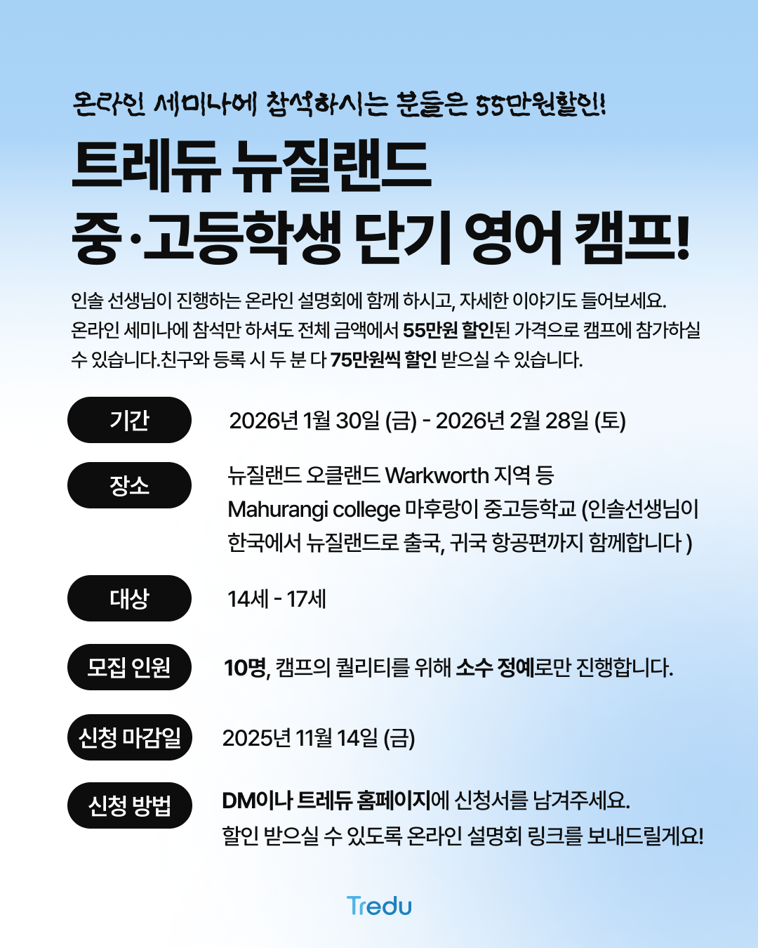 드디어 트레듀에서 뉴질랜드 중·고등학생